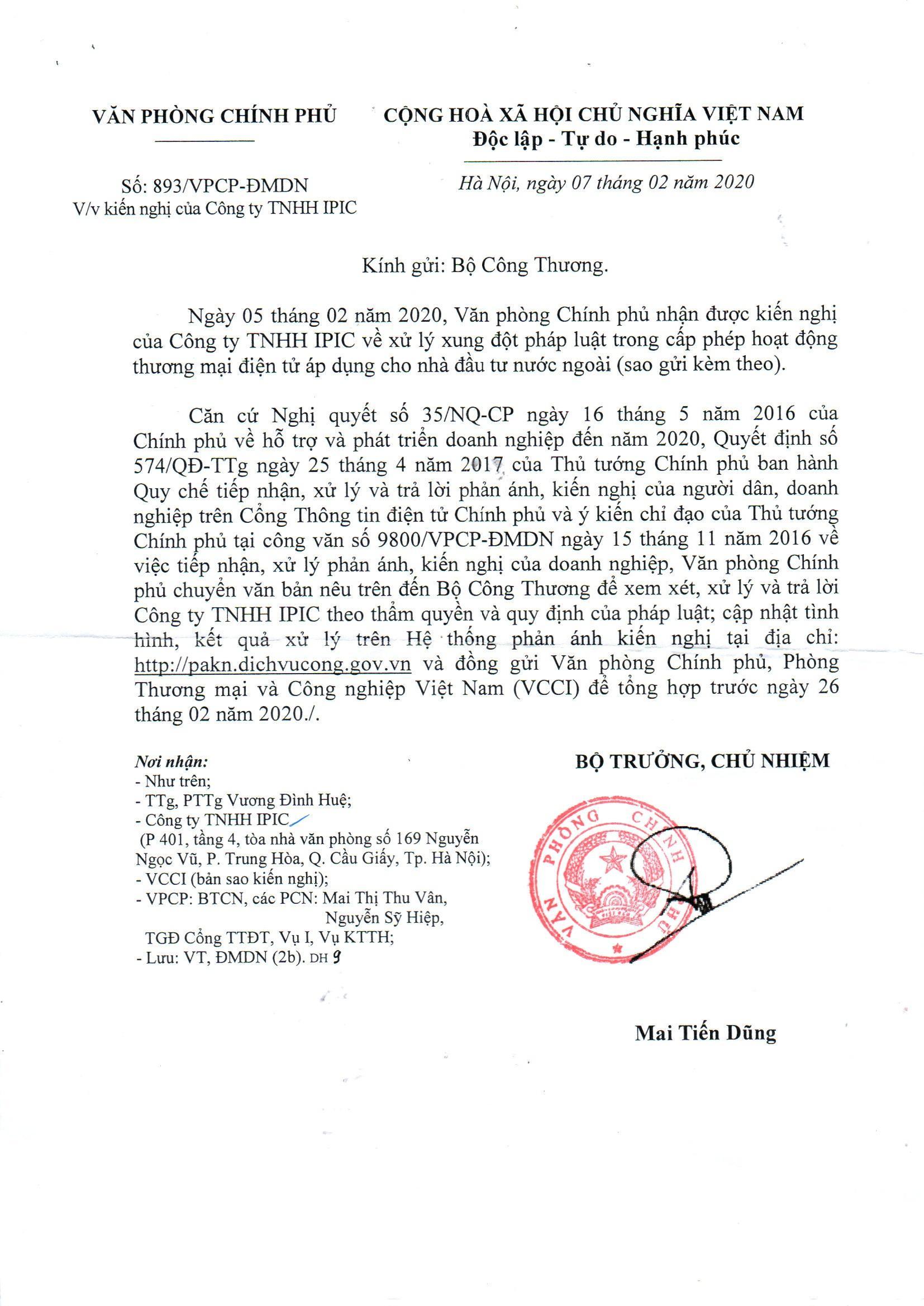 IPIC Law Company recently has applied a petition to the Government about handling the conflict of laws issues in the field of E-commerce related to the Decree No. 52/2013/ND-CP dated May 16, 2013 of the Government on E-commerce and Decree No. 09/2018/ND-CP dated January 15, 2018 of the Government which have been specified in detail on the Commercial Law and the Law on Foreign Trade Management related to goods trading activities and many other activities directly related to the purchase and sale of goods by foreign investors and foreign-invested economic organizations in Vietnam.